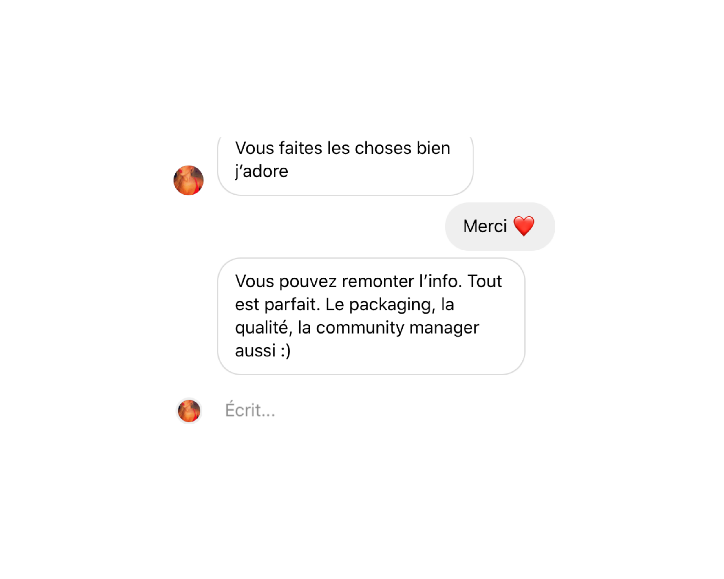 Les avis des clients de mes clientes. Dans le cadre de mes missions de Community Management, je suis amenée à échanger avec les vraies clientes, celles qui achètent, qui ont des problèmes de livraison ou des questions. C'est un travail long, pas toujours simple... et que j'adore.